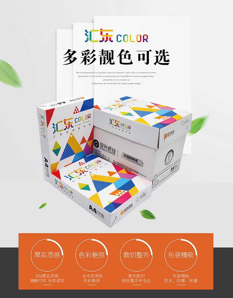 汇东彩色复印纸 80G A4蓝色 500S/包 5包/箱